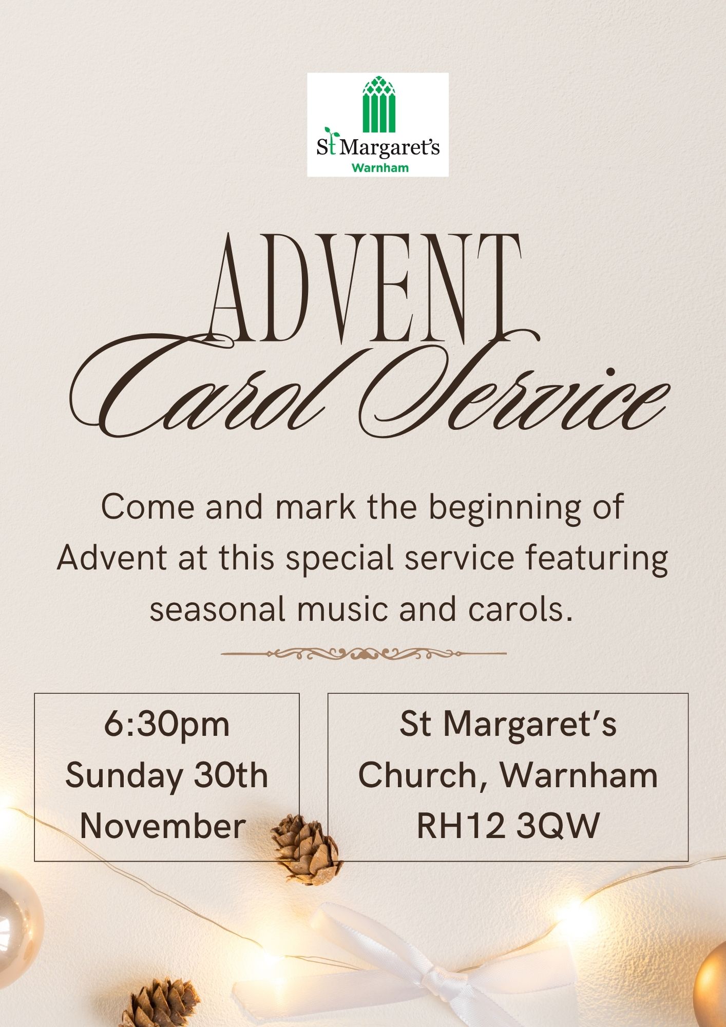 - Advent Carols at St Margaret’s Warnham, 6:30pm