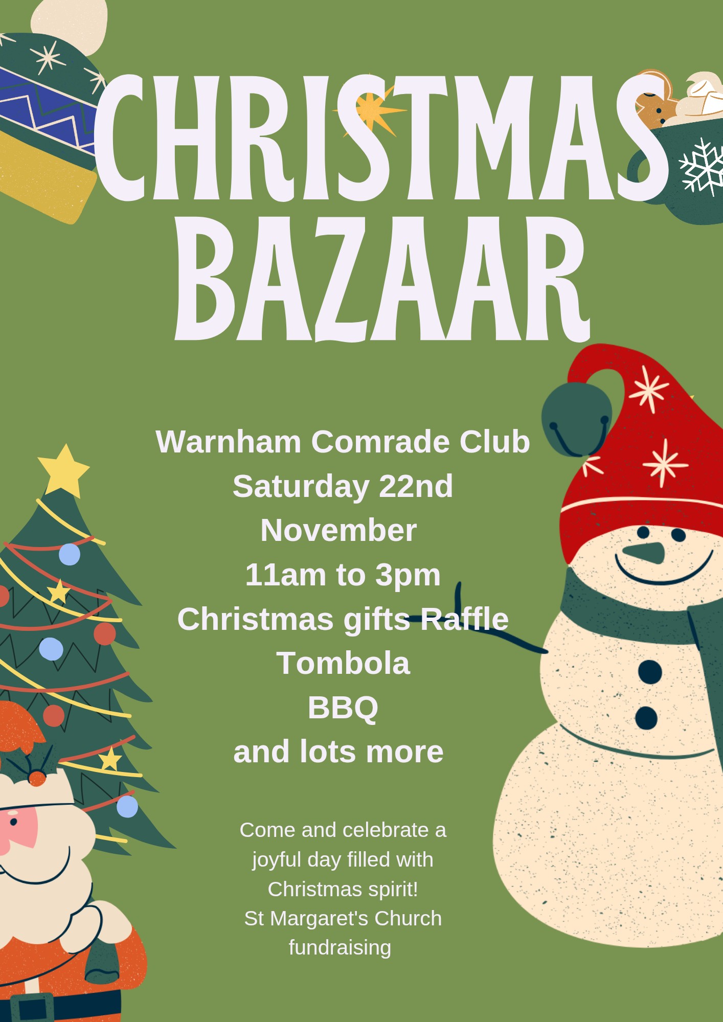 - Christmas Bazaar at Warnham Comrade Club, 11am-3pm, by St Margaret’s, Warnham