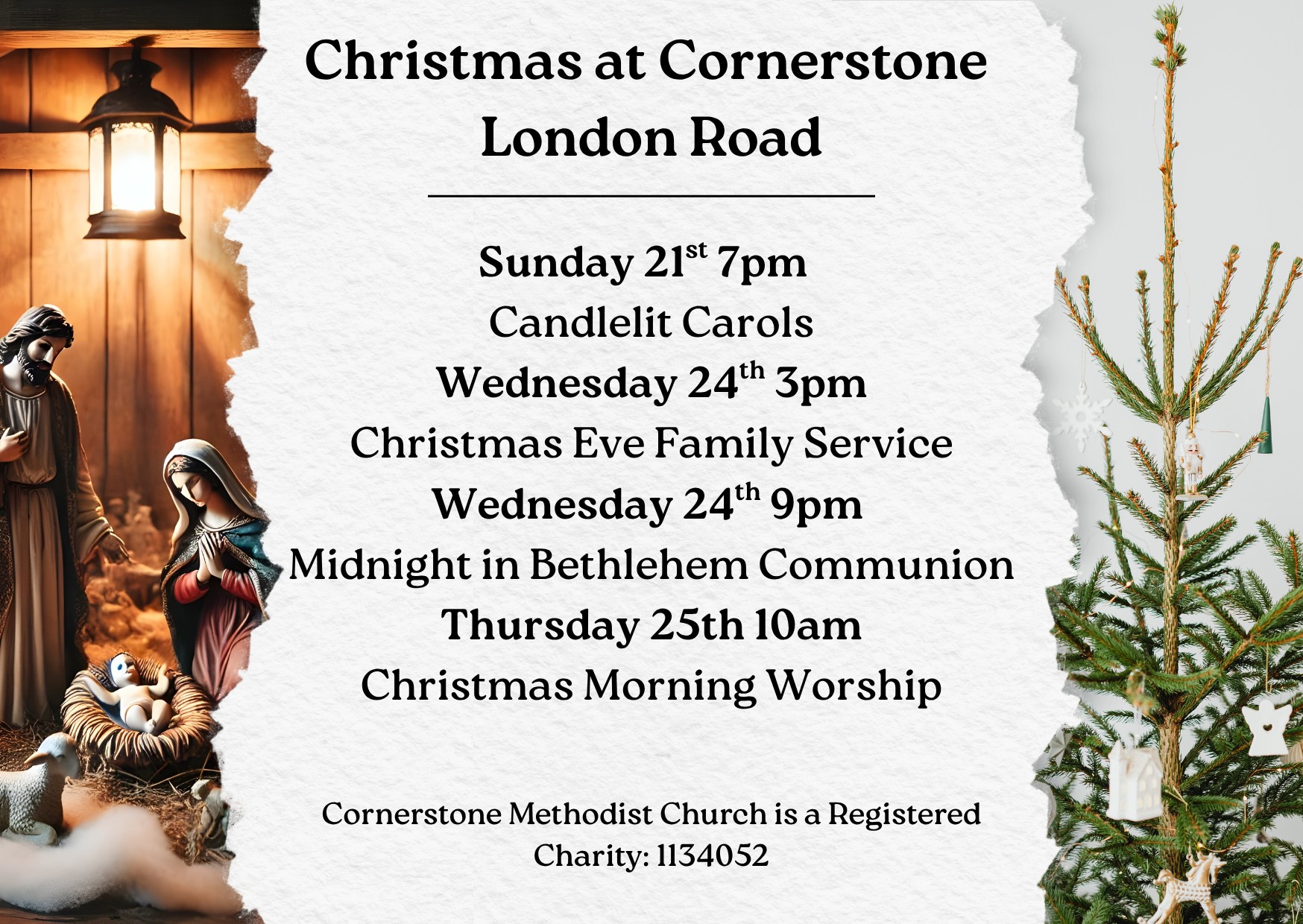 - Midnight in Bethlehem Communion, Cornerstone Methodist London Road, Horsham, 9pm