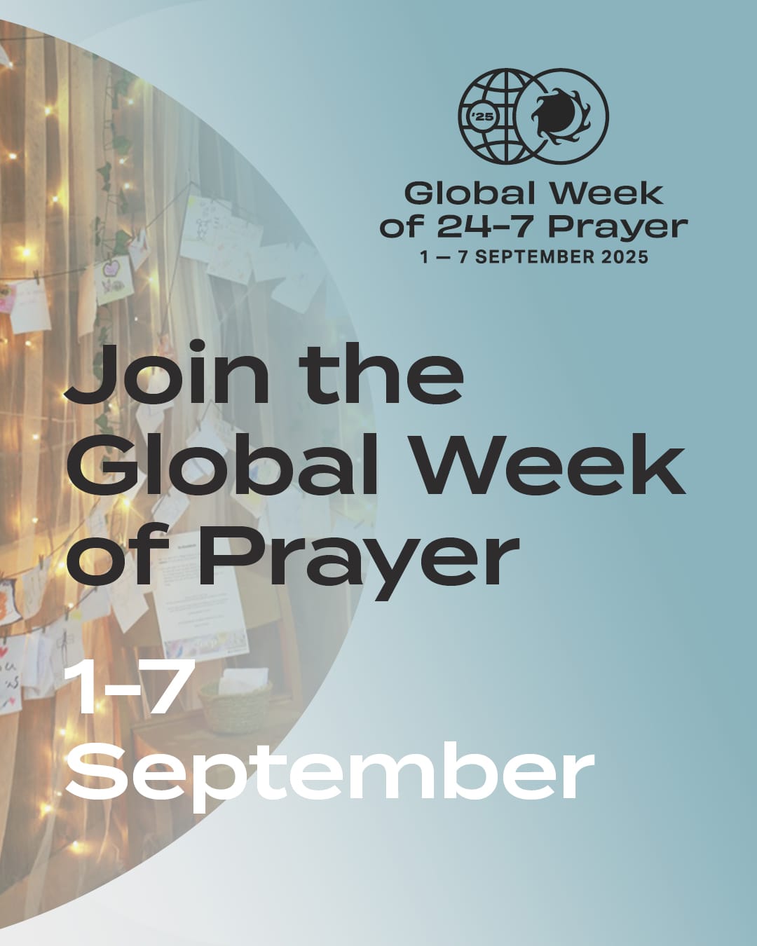 You’re invited to join in the Global Week of Prayer from 1st to 7th September, organised by 24-7 Prayer. Choose an hour to pray for our world, then put it in your calendar, and set an alarm on your phone. You can pray from home, in a church building, or on the streets. There are also opportunities to meet and pray together during the week: