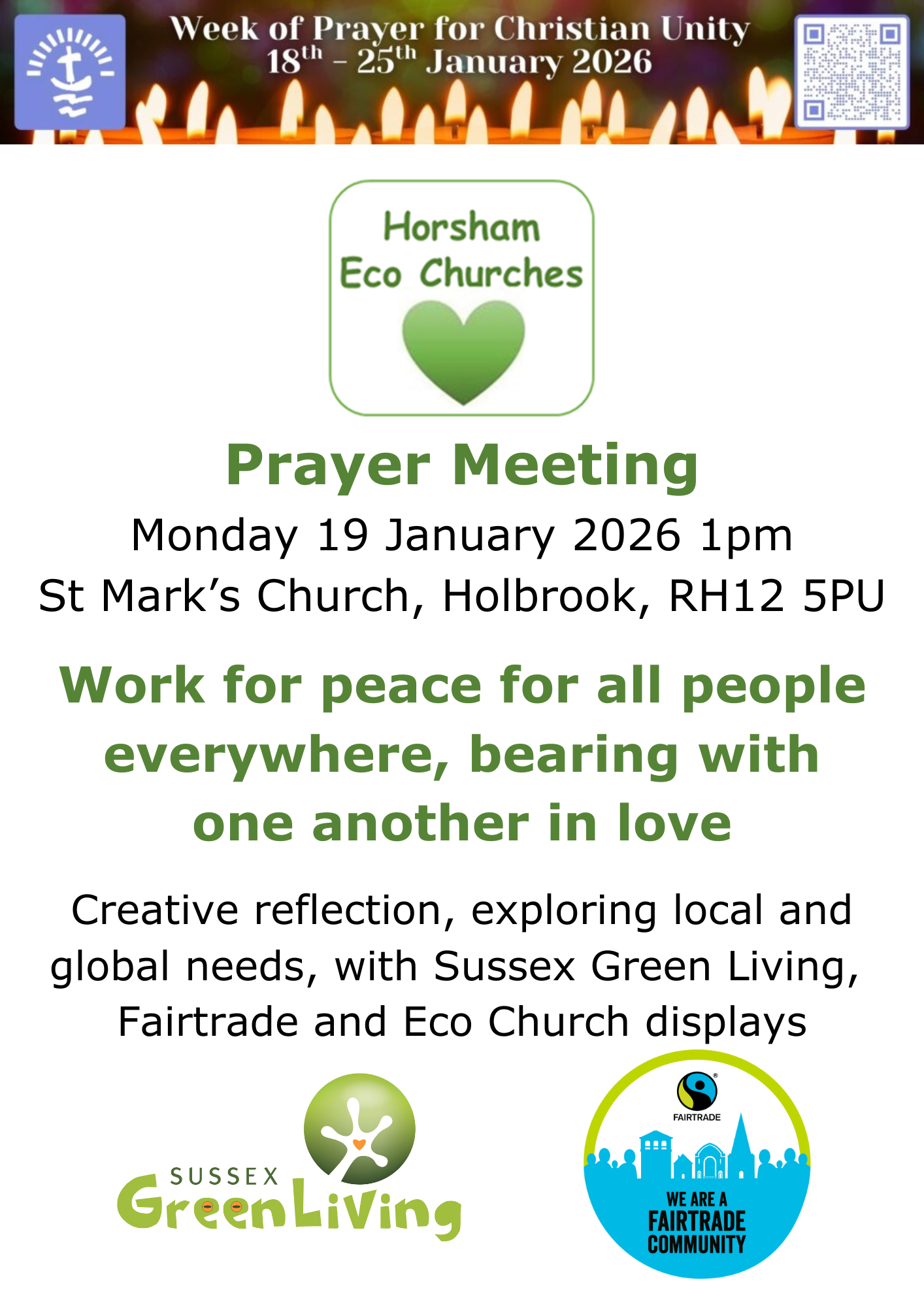 - Monday 19th Jan, 1pm – Prayer Meeting with Horsham Eco Church @ St Marks, Holbrook, RH12 5PU (download a poster)